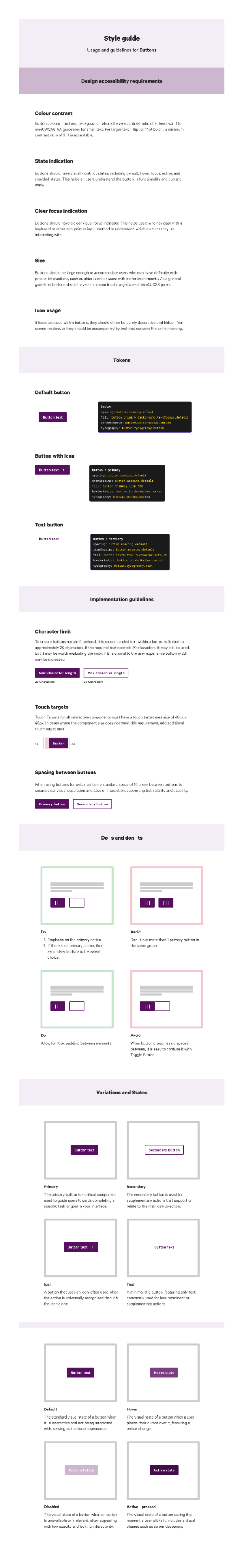 This was to showcase the uses and guidelines of when to use each variant, and was there to support onboarding of new designer and developers.